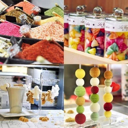 In my opinion, one of the biggest advantages of the place lies in the fact that it has stalls from the best pastry shops in the city (or at least most of them). Since I planned to visit a lot of pastry shops on my trip to Paris, the place simply saved me from running around the city. Who isn't there? Pierre Hermé – with a branch dedicated to macarons, Eclair de Genis, Aoki, Jean Paul Habin and more. Only Dora is missing a name, and that's because Dora has stalls all over the competing department store, Printemps, which is located next to Galeries Lafayette – so it's close by anyway. Beyond the pastry shops, there are gourmet fast food stalls that you can buy and eat on the spot, and of course you can go downstairs and get the gourmet supermarket that every foodie dreams of. What's not there?? There are entire areas dedicated to salt, tea, various chocolates, candies and even sugar "cubes" designed for tea. In the picture above you can see 2 examples of this (the colorful balls and the angels). On my last day in Paris I did a big shopping trip there and bought everything there. Tea, salt, the beautiful candies in the jar you see in the picture above (the kids went crazy for them and they reminded me of the Joules candies of the past), Angelina's chocolate Shaw sold in a bottle (and I can taste it at home when my body is not in a sugar attack from all the sweets I've tasted), Angelina's caramel candies sold in a gorgeous box, balsamic vinegar with truffle oil and more and more. The selection there was simply huge and I spent hours there debating what not to buy (because I wanted to buy everything of everything...).